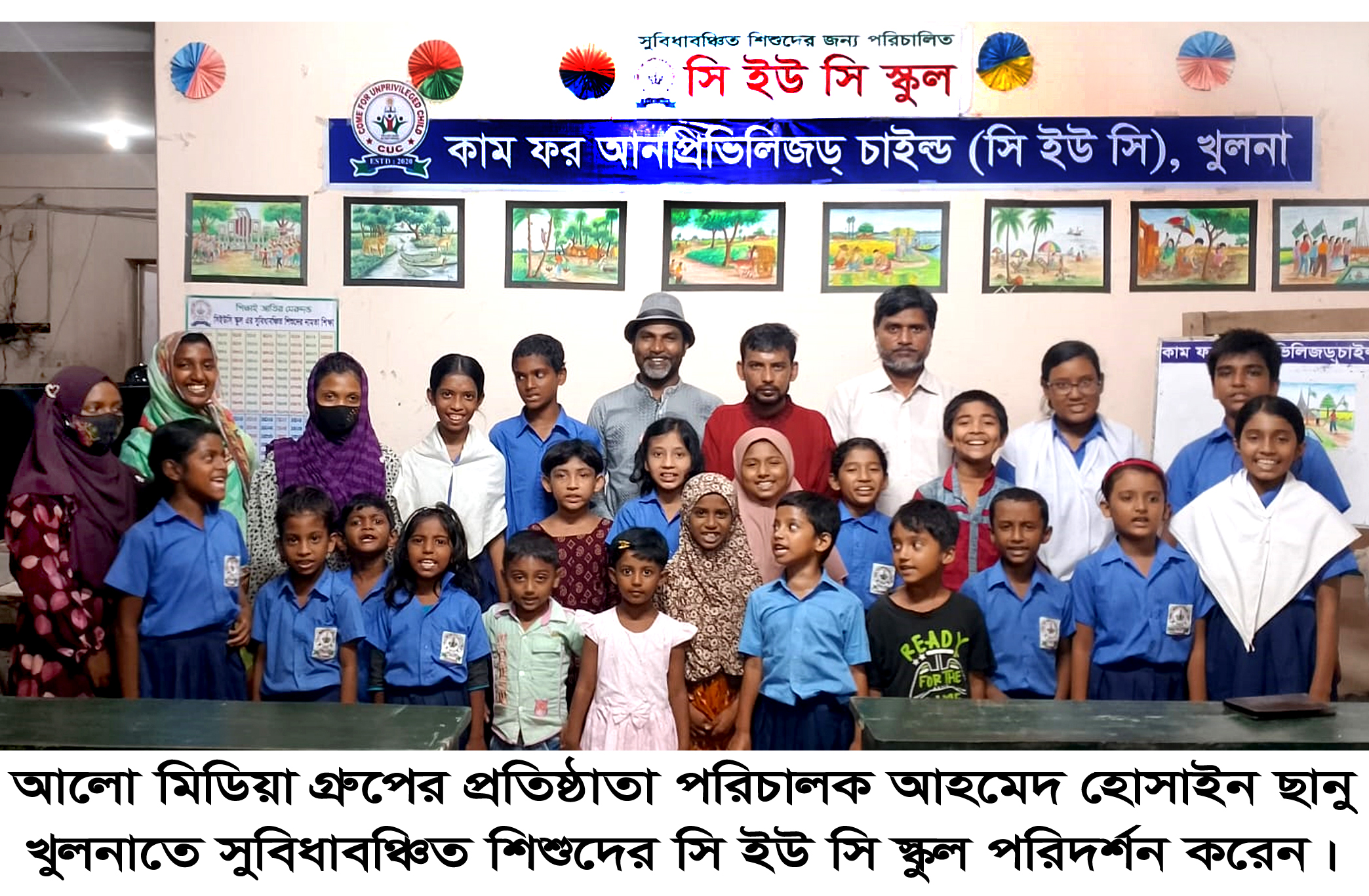 খুলনা প্রতিনিধি : আলো মিডিয়া গ্রুপের প্রতিষ্ঠাতা পরিচালক, বিশিষ্ট সাংবাদিক ও সংগঠক আহমেদ হোসাইন ছানু ঢাকা থেকে খুলনায় এক সপ্তাহের জন্য সফরে এসেছেন। বিকাল ৫ ঘটিকায় খুলনা আর্ট একাডেমির প্রতিষ্ঠাতা পরিচালক চিত্রশিল্পী মিলন বিশ্বাসকে সঙ্গে নিয়ে সুবিধাবঞ্চিত শিশু ও দরিদ্র মানুষের কল্যাণে নিবেদিত সামাজিক সংগঠন কাম ফর আনপ্রিভিলিজড চাইল্ড সিইউসি কর্তৃক পরিচালিত সুবিধা বঞ্চিত শিশুদের সি ইউ সি স্কুল ৬১ সাউথ সেন্ট্রাল রোড খুলনায় পরিদর্শন করেন।এসময় সি ইউ সি সংগঠনের সভাপতি জনাব মোঃ শাহিন হোসেন এবং যুগ্ম সম্পাদক আরিফা ইসলাম খুকুমনি ও দপ্তর সম্পাদক কারিমা আক্তার এবং স্কুলের শিক্ষার্থীরা এ সময় বিশিষ্ট সাংবাদিক আহমেদ হোসাইন ছানুর হাতে সি ইউসি সংগঠনের সভাপতি জনাব মোঃ শাহিন হোসেন প্রতিষ্ঠানের মনোগ্রাম ব্যবহারিত একটি খাতা স্মৃতিস্বরূপ উপহার দেন। এবং সাংবাদিকের সম্পর্কে শিশুদের সম্মুখে প্রশংসা করেন শিশুরা করতালির মাধ্যমে শুভেচ্ছা জানায় এরপরে অতিথির পরিদর্শনের পরে আহমেদ হোসাইন ছানুর কাছে অনুভূতি জানতে চায় তিনি বলেন ঢাকায় বসে বিভিন্ন কার্যক্রম সামাজিক যোগাযোগ মাধ্যমের কারণে চিত্রশিল্পী মিলন বিশ্বাস দাদার সহযোগিতায় দেখতে পেরেছি এখানের শিশুদের নিয়ে আমি বেশ কিছু নিউজ প্রকাশ করে দিয়েছি। তখন মনে মনে ভেবেছি খুলনাতে গেলে এই স্কুলটি সরাসরি একবার দেখে আসবো ।এখানে এসে আমি সত্যিই আনন্দিত এখানের নিউজ পড়ে যতটা ভালো লেগেছে আজকে সরাসরি এসে তার চেয়েও ভালো লেগেছে। এখানের ছোট ছোট শিশুদের কার্যক্রম এবং ভদ্রতা আমাকে মুগ্ধ করেছে আমি সবসময় আমার স্থান থেকে এই প্রতিষ্ঠানের সকল কার্যক্রম বিভিন্ন ভাবে প্রকাশ করে দেওয়ার চেষ্টা করব। আজকের শিশু আগামী দিনের ভবিষ্যৎ এ কথা চিন্তা করেই আমি এই শিশুদের বিষয় তুলে ধরব গণমাধ্যমে যাতে করে এই শিশুদের পড়াশোনার জন্য বিভিন্ন সামাজিক ব্যক্তিরা এগিয়ে আসে যাতে করে সমাজে কোন শিশু ঝরে না পড়ে শৈশবেই। সি ইউ সি সংগঠনের সভাপতি জনাব মোঃ শাহিন হোসেন অতিথিকে ধন্যবাদ জানিয়ে শিশুদের ক্লাসের সমাপ্তি ঘোষণা করেন।