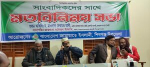 মোহাঃ ইমরান আলী, চাঁপাইনবাবগঞ্জ প্রতিনিধি: আসন্ন ত্রয়োদশ জাতীয় সংসদ নির্বাচনে চাঁপাইনবাবগঞ্জ-১ (শিবগঞ্জ) আসনের জামায়াতে ইসলামীর মনোনীত জামায়াতে ইসলামীর কেন্দ্রীয় কর্মপরিষদের সদস্য ও রাজশাহী মহানগরীর আমীর ড. কেরামত আলী বলেছেন, বাংলাদেশ জামায়াত ইসলাম নির্বাচনী আচরণ বিধি-নিষেধ মেনে আমাদের নির্বাচনী প্রচারণা বন্ধ করে দিয়েছি। শুধু সাংগঠনিক কার্যক্রমগুলো অফিসে চলমান রয়েছে। কিন্তু বিএনপির মনোনীত প্রার্থী নির্বাচনী আচরণ বিধি-লঙ্ঘন করে ভোটারদের ফ্যামেলি কার্ড আর কৃষি কার্ড করে দেবো বলে ধানের শীষ প্রতিক হাতে নিয়ে প্রচারণা করেই যাচ্ছে। তিনি বুধবার দুপুরে শিবগঞ্জ উপজেলা শাখা জামায়াতে ইসলামীর আয়োজনে উপজেলা দলীয় কার্যালয়ে সাংবাদিকদের সাথে মতবিনিময় সভায় প্রধান অতিথির বক্তব্যে এসব অভিযোগ করেন।তিনি আরো বলেন, বর্তমানে এই আসনে দুই দল নির্বাচনী মাঠে রয়েছে কিন্তু মাঠে বিধি-নিষেধ মানছে না বিএনপি। তার এখনো দলীয় প্রতীক নিয়ে প্রচারণা করে যাচ্ছে। কিন্তু সেটা আমরা করছি না। শুধু তাই নয়, বিএনপি বিভিন্ন ধরনের প্রতিশ্রুতি দিয়ে যাচ্ছে। এতে তারা বলছেন ফ্যামেলি কার্ড, কৃষি কার্ড দেবেন। বর্তমানে বিএনপির নির্বাচনী প্রচারণার ক্ষেত্রে আচরণ বিধি লঙ্ঘন করছে।তিনি আরো বলেন, নির্বাচনী সময় আইন শৃঙ্খলা পরিস্থিতি বিশৃঙ্খল সৃষ্টির আশঙ্কা করছি। সেই সাথে ভোট কেন্দ্র দখলেরও চেষ্টা হতে পারে। বিভিন্ন ভাবে হুমকি-ধামকি দেয়া হচ্ছে।আমরা সব মিলিয়ে আইনী ব্যবস্থা নেয়া জন্য প্রশাসনকে শীঘ্রই জানাবো। সেই সাথে সাংবাদিকদেরকও জানানো হবে। তবে, লেভেল প্লে-ফিল্ড নিয়েও তিনি অভিযোগ করেন।তিনি দেশের চলমান রাজনৈতিক পরিস্থিতি, গণতন্ত্র, সুশাসন, সংবাদমাধ্যমের দায়িত্ব ও ভূমিকা এবং আগামীর রাজনৈতিক কর্মসূচি নিয়ে খোলামেলা আলোচনা করেন। একটি গণতান্ত্রিক ও ন্যায়ভিত্তিক সমাজ গঠনে সাংবাদিকদের ভূমিকা অত্যন্ত গুরুত্বপূর্ণ। সত্য, নিরপেক্ষ ও বস্তুনিষ্ঠ সংবাদ পরিবেশনের মাধ্যমে দেশ ও জাতির কল্যাণে সাংবাদিকদের আরও সক্রিয় ভূমিকা পালনের আহ্বান জানান।সভায় সভায় উপজেলা শাখা জামায়াতে ইসলামীর আমীর মাওলানা সাদিকুল ইসলামের সভাপতিত্বে উপস্থিত ছিলেন, উপজেলা শাখা জামায়াতে ইসলামীর সেক্রেটারি মাওলানা মোঃ বাবুল ইসলাম, সহকারি সেক্রেটারি মাওলানা দুরুল হোদা, শিবগঞ্জ পৌর শাখা জামায়াতে ইসলামী সেক্রেটারি মাওলানা আব্দুর রউফ। এ সময় শিবগঞ্জ উপজেলার বিভিন্ন প্রিন্ট ও ইলেকট্রনিক মিডিয়ার সাংবাদিকরা উপস্থিত ছিলেন।