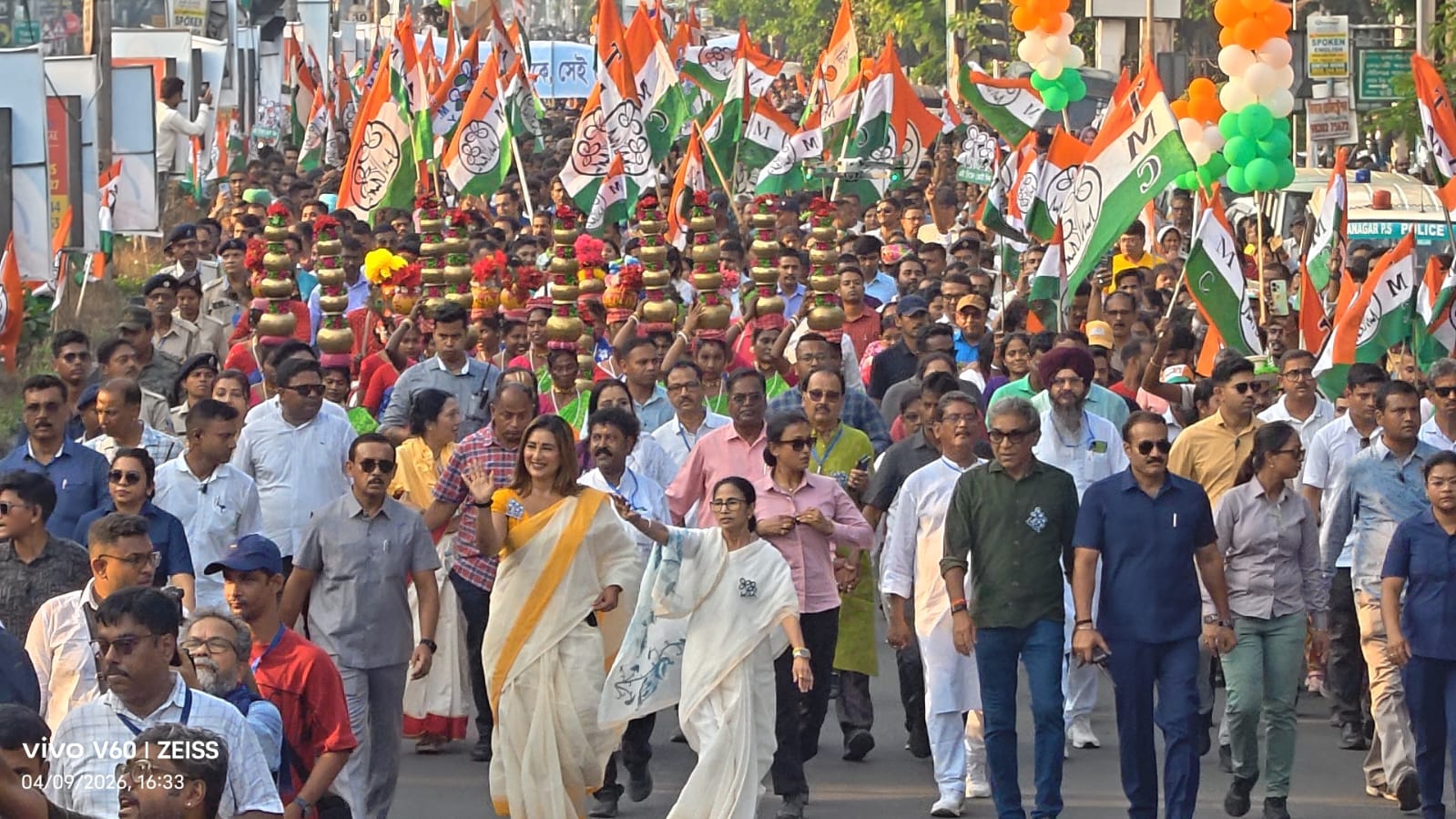 ভোটের বার্তা দিতেই মাননীয়া মুখ্যমন্ত্রী মমতা বন্দ্যোপাধ্যায়ের বরানগরে রোড শো করলেন।